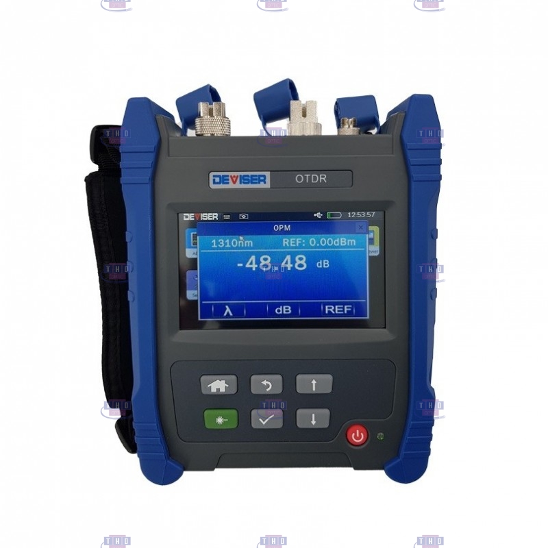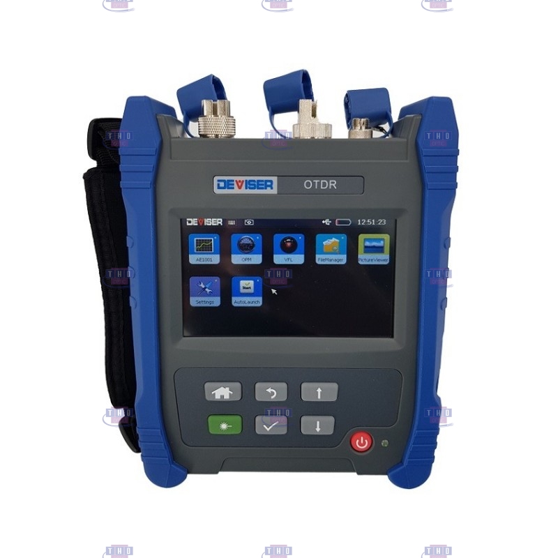 OTDR QUAD multimode et monomode DEVISER AE3100CM . Longueurs d'onde 850/1300 nm, 25/27 dB et 1310/1550 nm 37/35 dB. Ports photomètre et laser rouge 10 mW intégrés. Ecran tactile 7’’. Zone morte d'évènement de 0,8 m. Traces aux formats ‘’sor’’. Connecteurs SC/APC (SM) et SC/PC (MM).